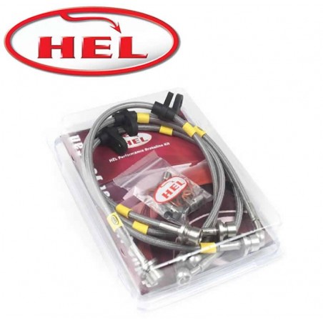 Set de lÛªneas de freno metÛÁlicas flexibles Hel para optimizar el tacto de la frenada, especialmente indicados para conducciÛÓn deportiva en calle y pistas de circuito.